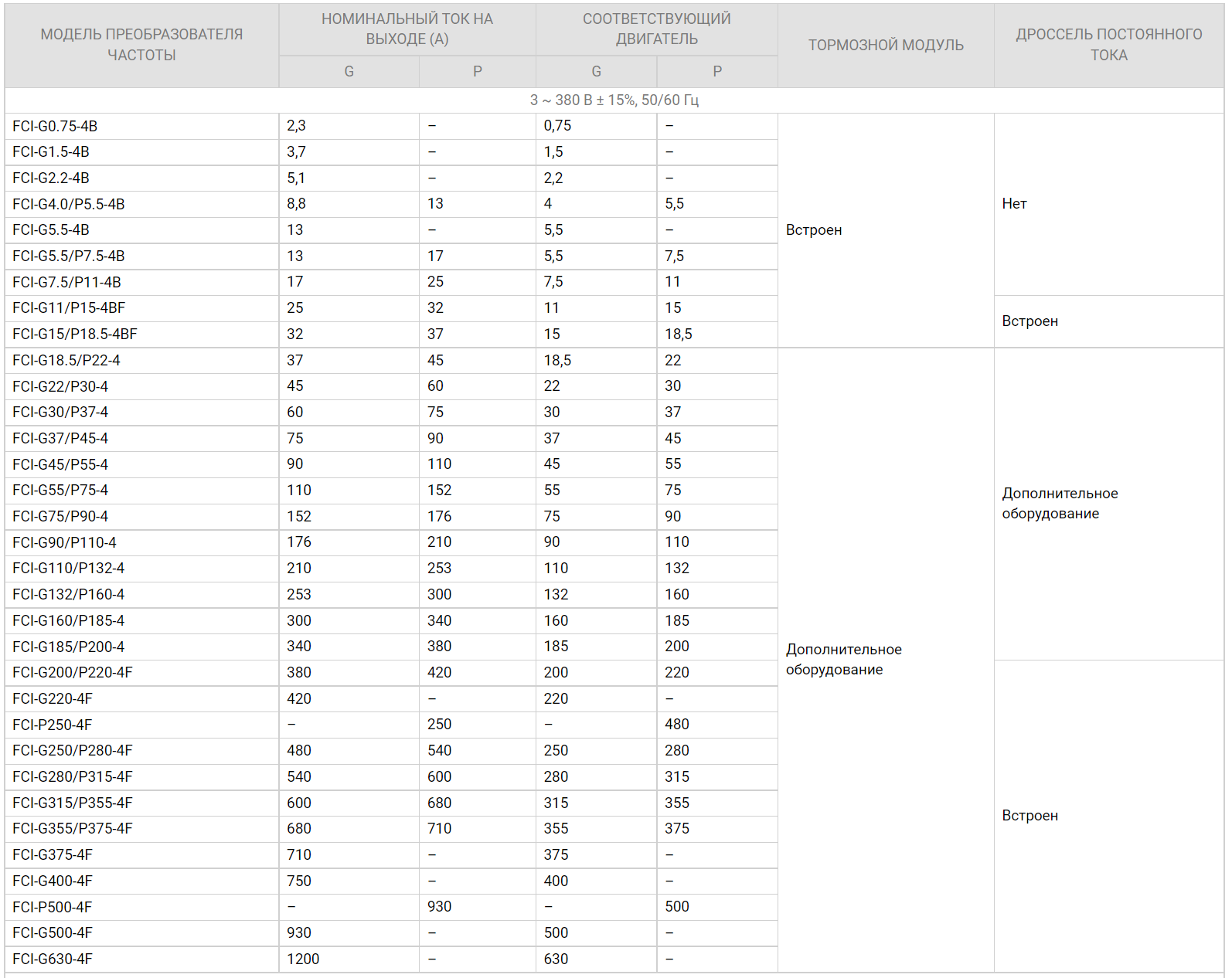 Каталог преобразователи частоты серии FCI