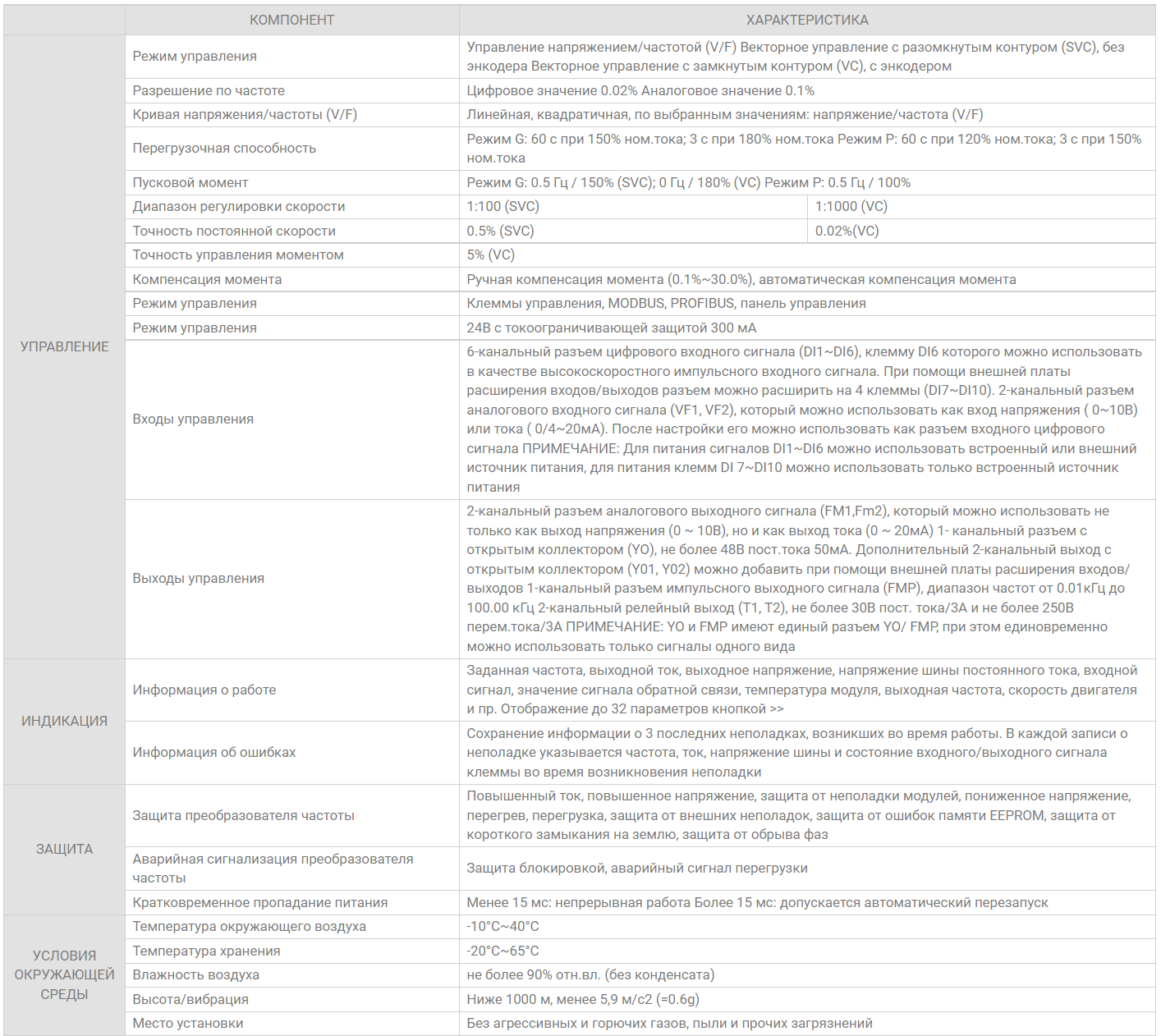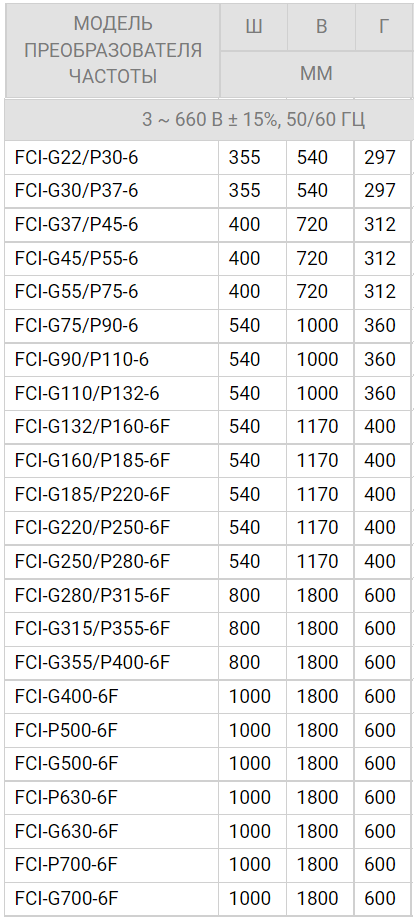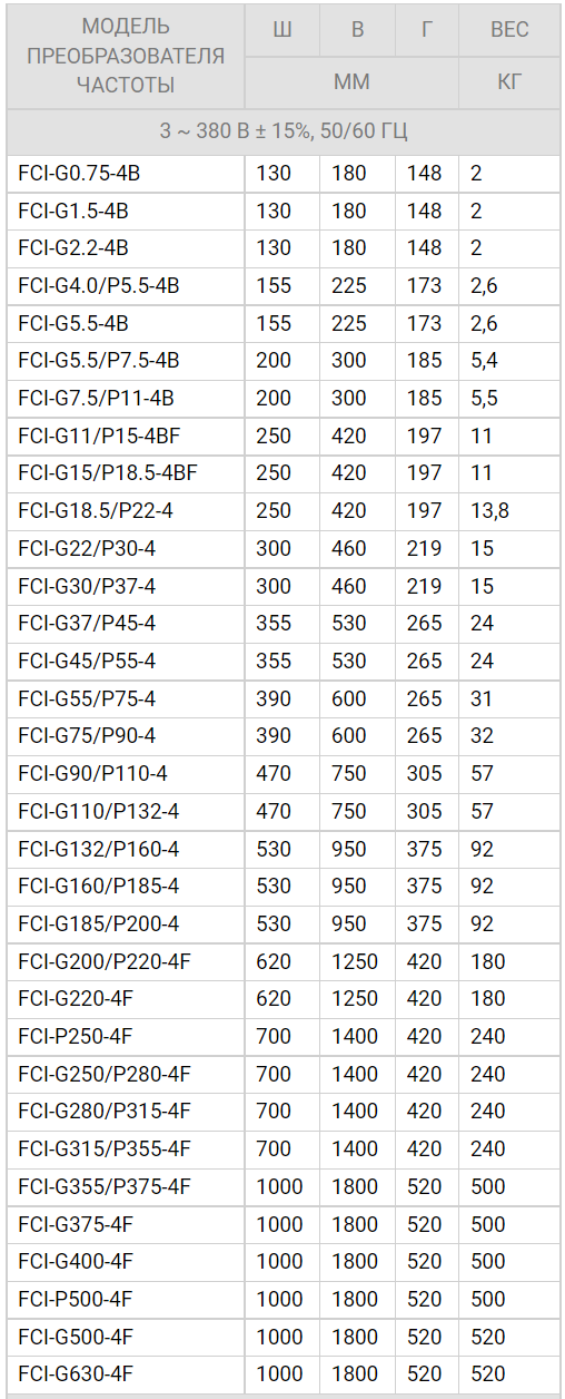 ТЕХНИЧЕСКИЕ ХАРАКТЕРИСТИКИ ПРЕОБРАЗОВАТЕЛЕЙ ЧАСТОТЫ INSTART СЕРИИ FCI
