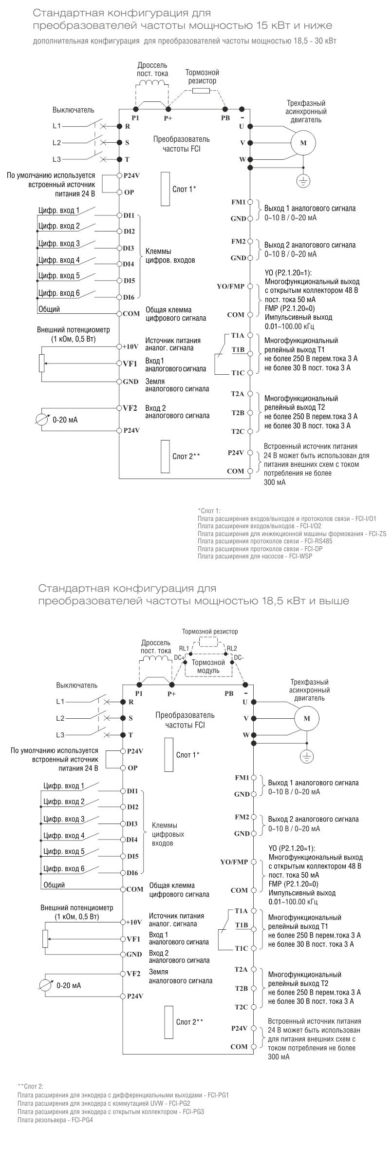 СХЕМА ПОДКЛЮЧЕНИЯ ПРЕОБРАЗОВАТЕЛЕЙ ЧАСТОТЫ INSTART СЕРИИ FCI