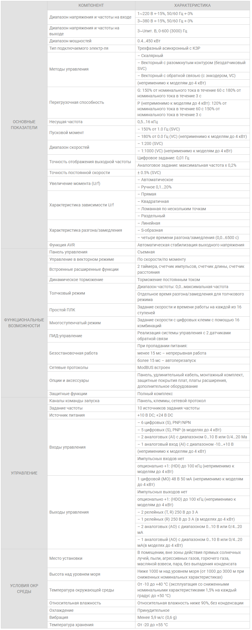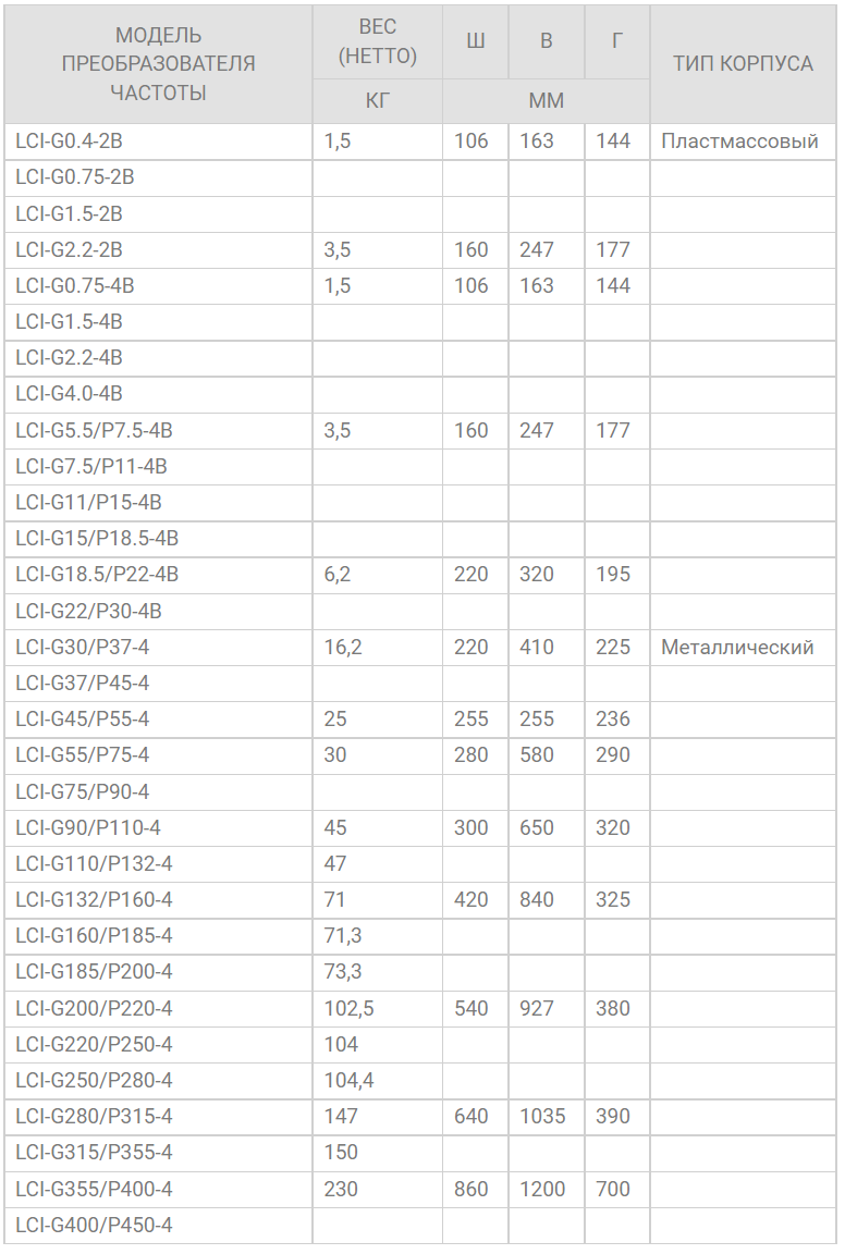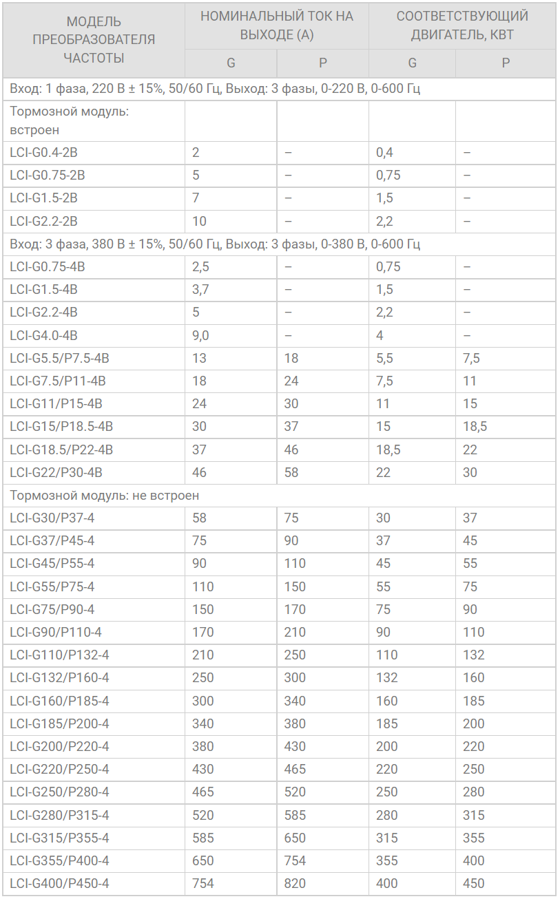 ТЕХНИЧЕСКИЕ ХАРАКТЕРИСТИКИ ПРЕОБРАЗОВАТЕЛЕЙ ЧАСТОТЫ INSTART СЕРИИ LCI