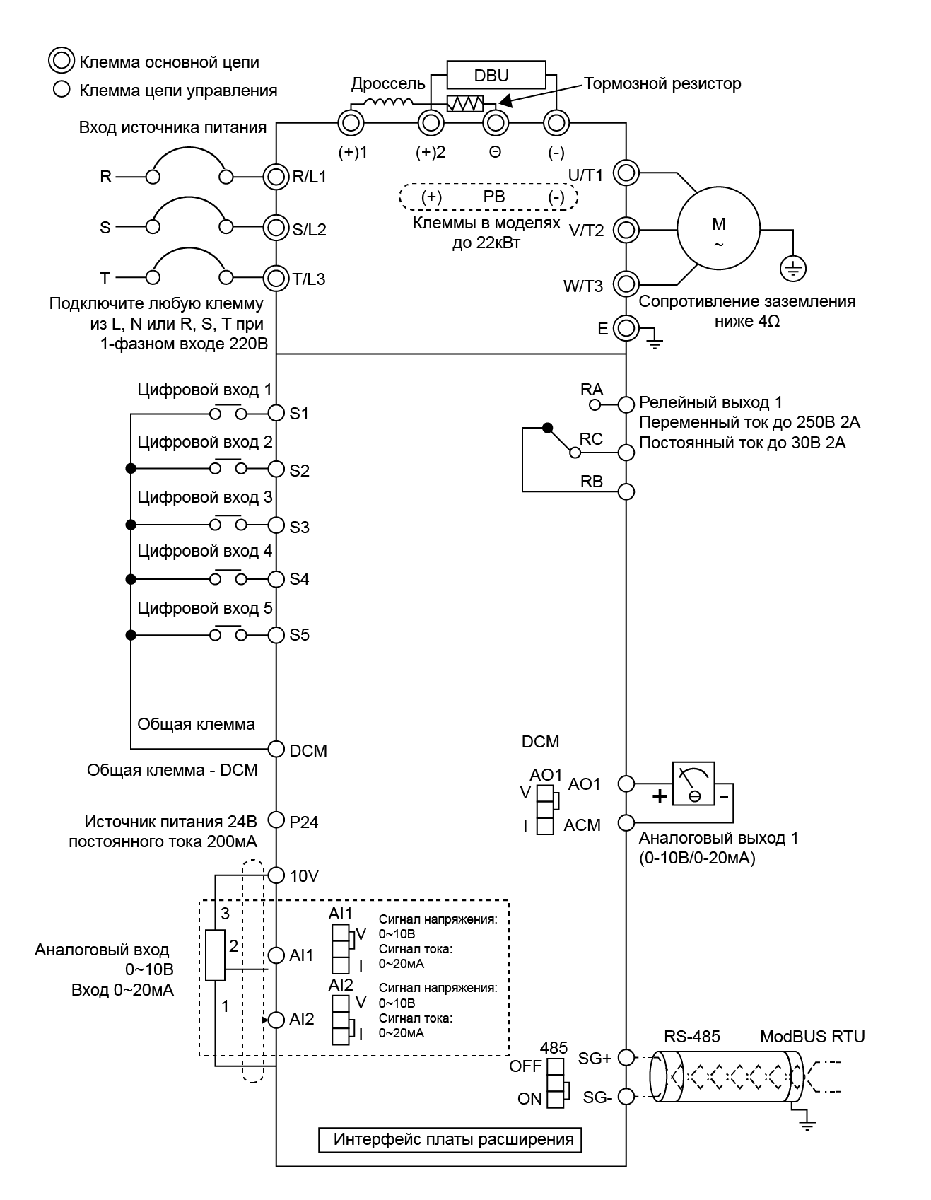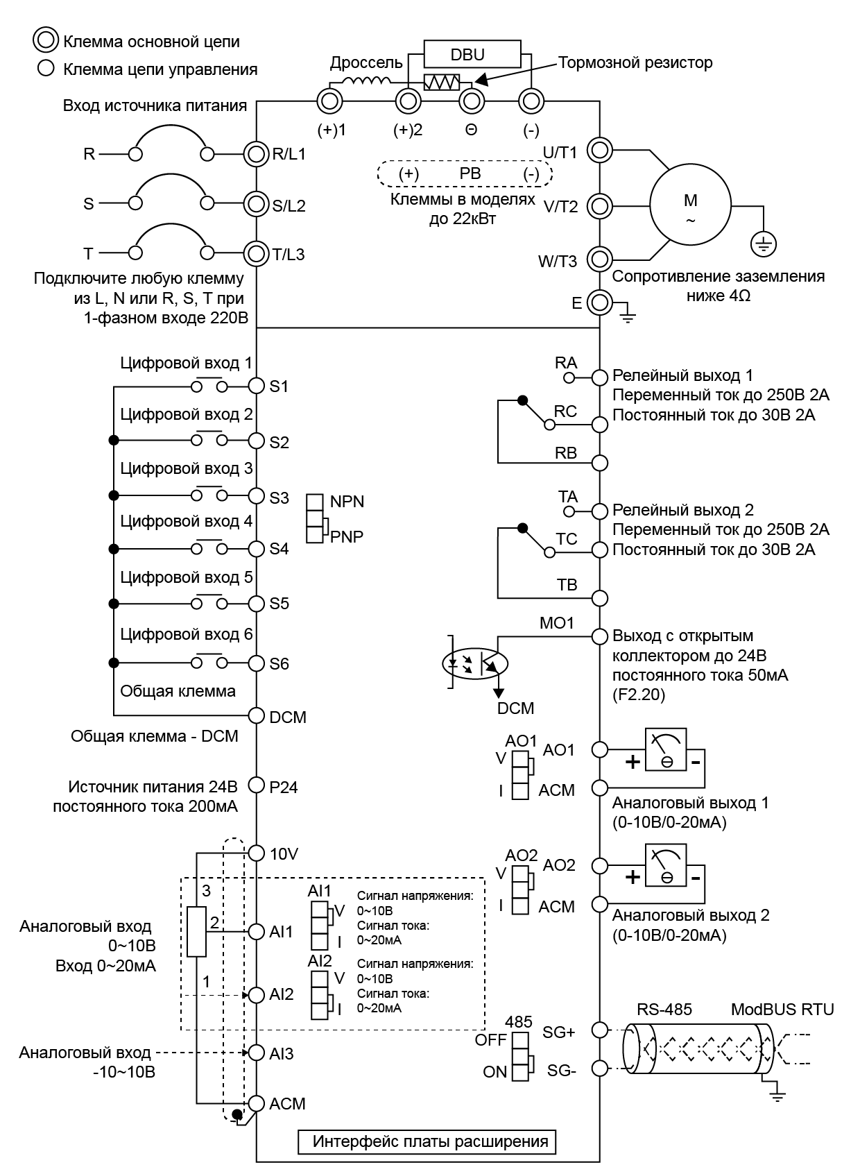 Схема подключения для преобразователей частоты серии LCI до 5.5 кВт
