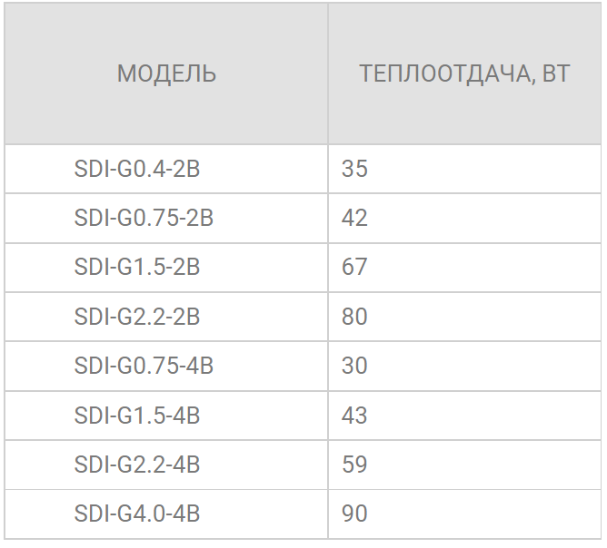 ТАБЛИЦА ДАННЫХ ПО ТЕПЛООТДАЧЕ ПРЕОБРАЗОВАТЕЛЕЙ ЧАСТОТЫ INSTART СЕРИИ SDI