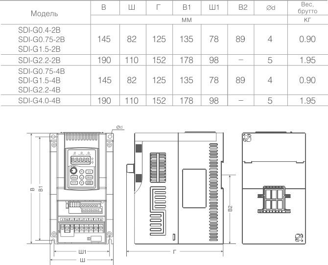 - Встроенный протокол MODBUS RTU (RS 485) IGBT модуль (кроме модели SDI–G4.0-4B)