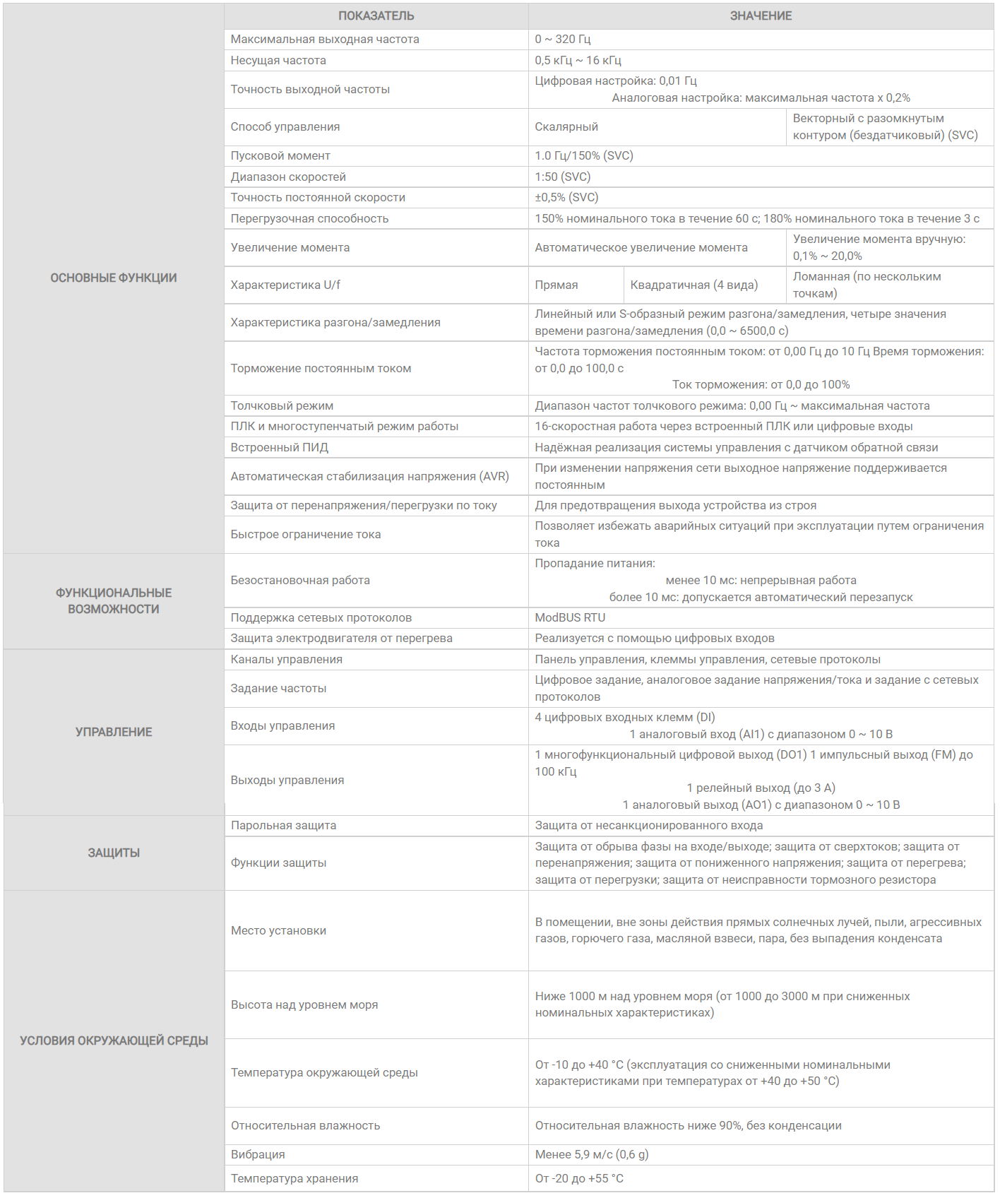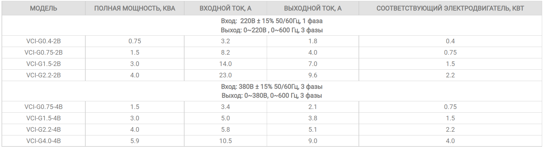 - Мощность электродвигателя (кВт) для общепромышленного режима (G)