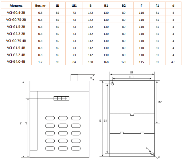 * Подключение для моделей VCI-G0.4-2B, VCI-G0.75-2B, VCI-G1.5-2B, VCI-G2.2-2B