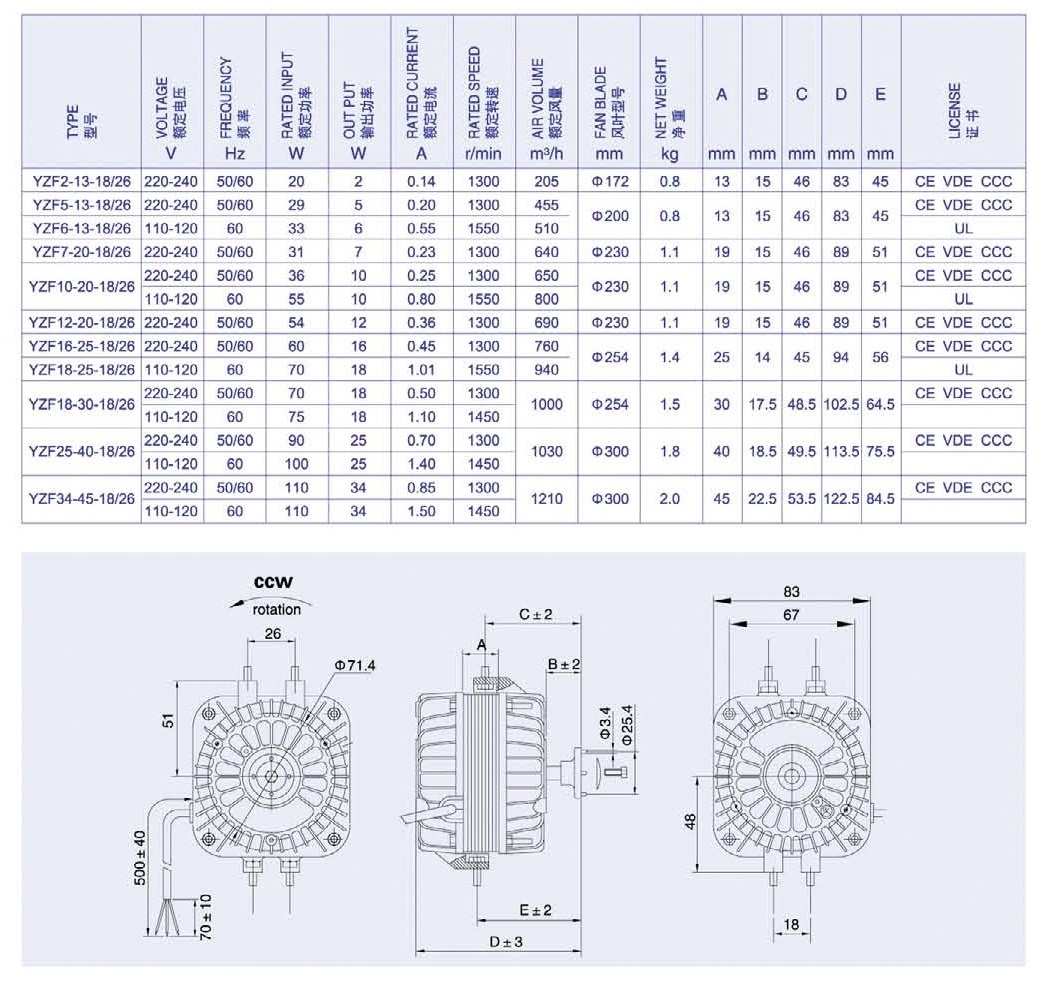 Вентиляторы осевые общего назначения серии YZF, производства фирмы Hangzhou Weiguang Electronic, Ltd (Китай) предназначены для перемещения воздуха или других невзрывоопасных, неагресивных газовых смесей с температурой от -30 до +60С, не содержащих липких веществ и волокнистых материалов, с концентрацией пыли и других твердых примесей не более 10мг/м3.
