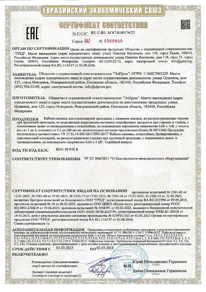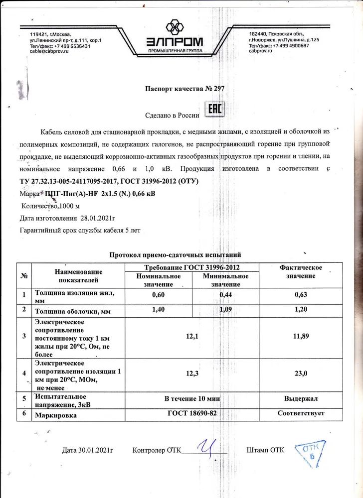 Кабель соответствует ГОСТ 31996-2012 и ГОСТ 18690-82