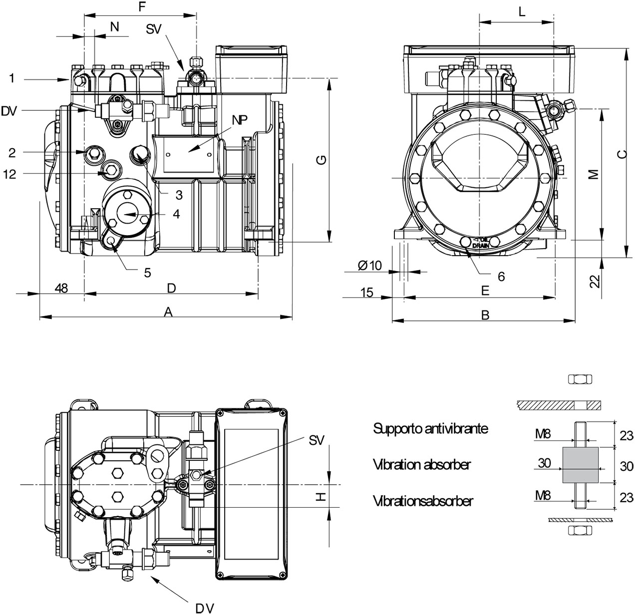 Компрессор Frascold A 0.7 - 5Y серии А поставляется в стандартной комплектации, включающей: