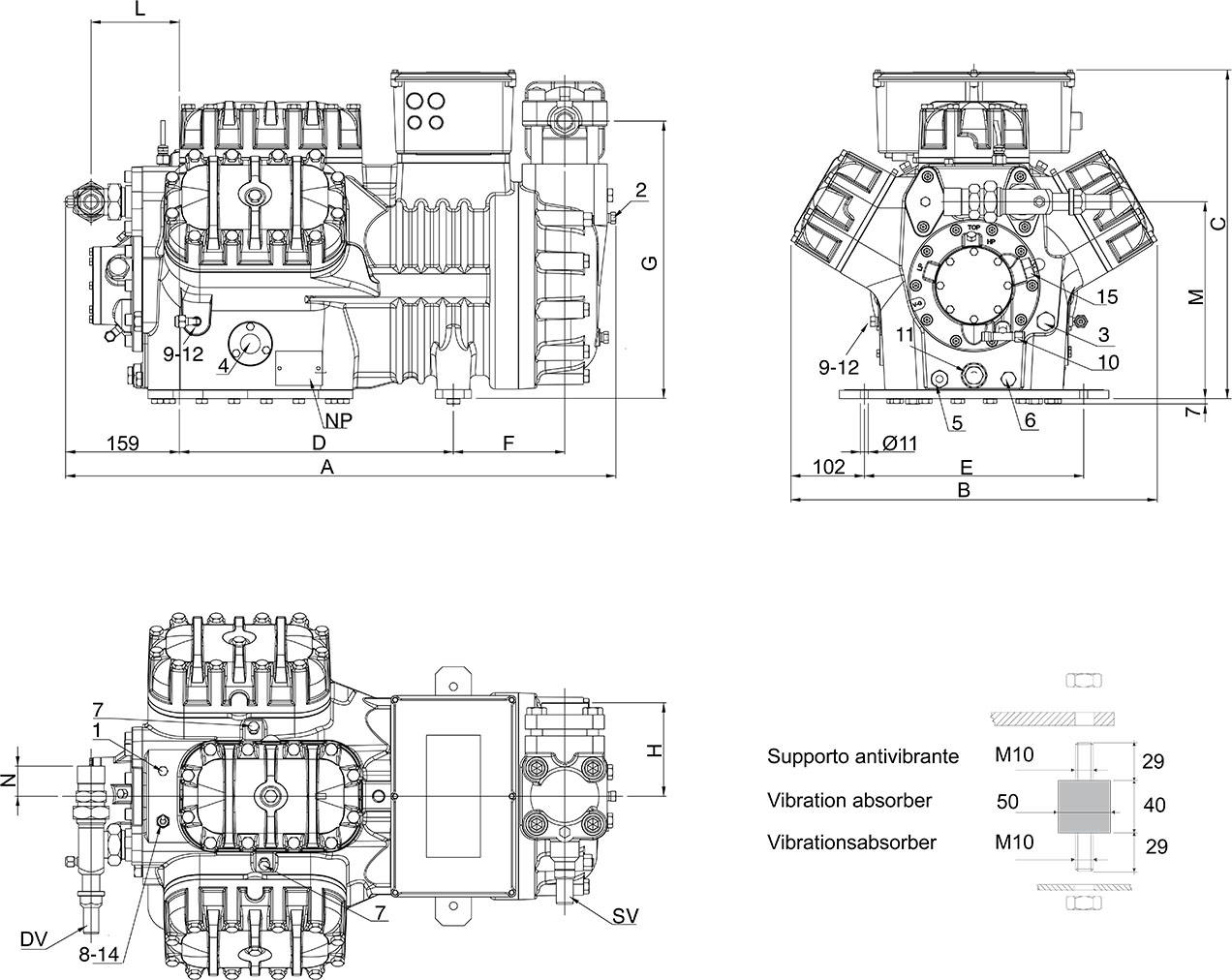 Компрессор Frascold W 60 - 187Y серии W поставляется в стандартной комплектации, включающей: