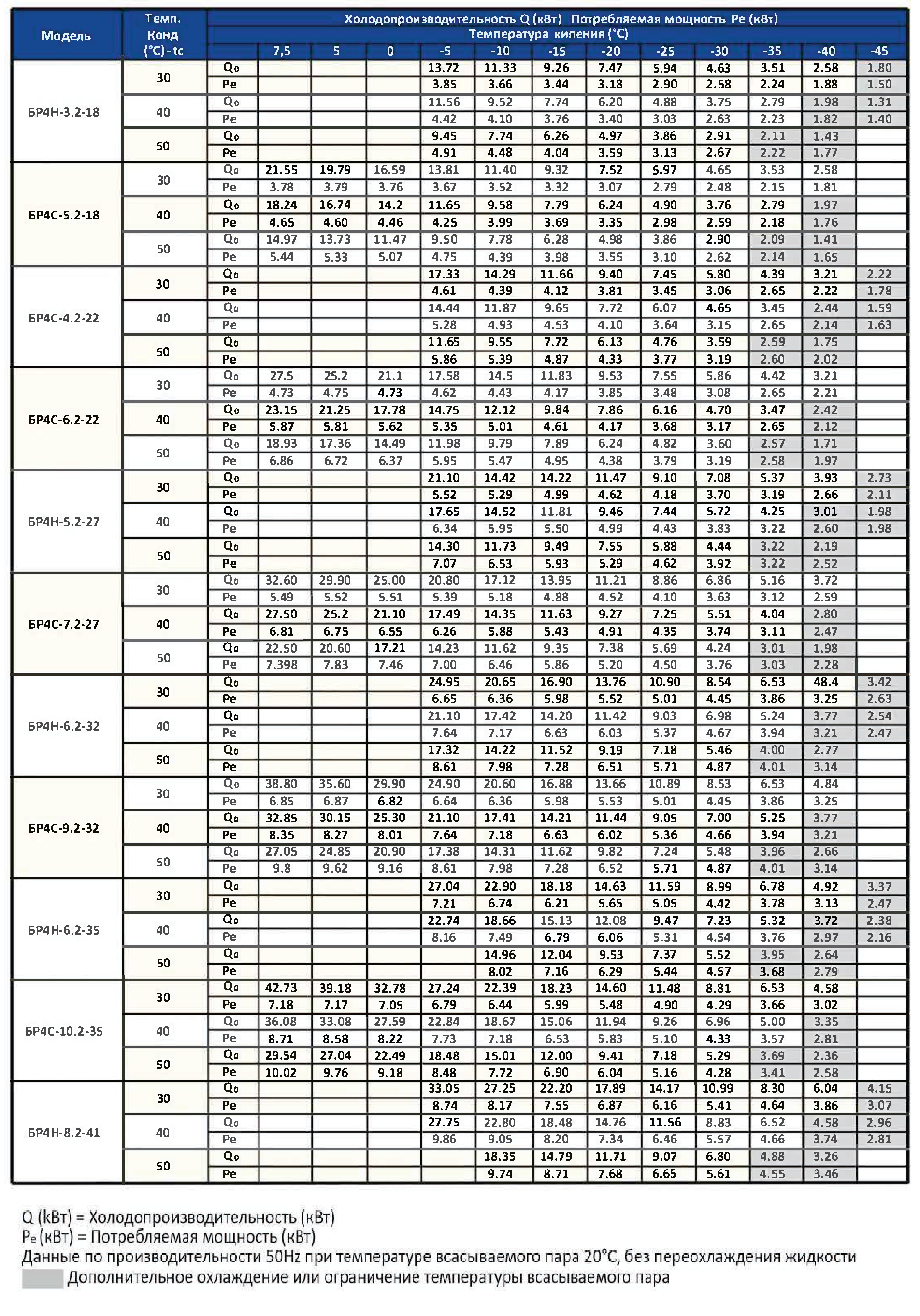Холодопроизводительность, Вт ПРИ R-404A/HBP- Высокотемпературные/380-420V / 50 / З | 17360 |