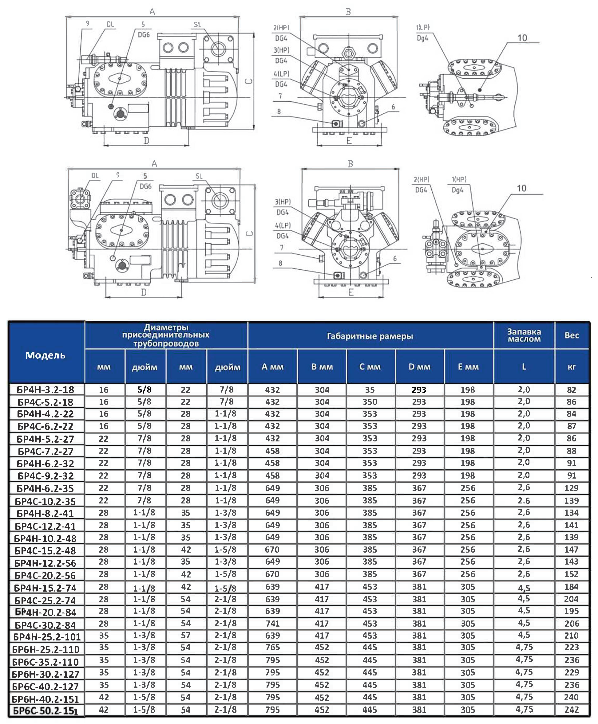 Компрессор | БР4С-6.2-22 (аналог BITZER 4EES-6Y, 4ЕС-6.2У) |
