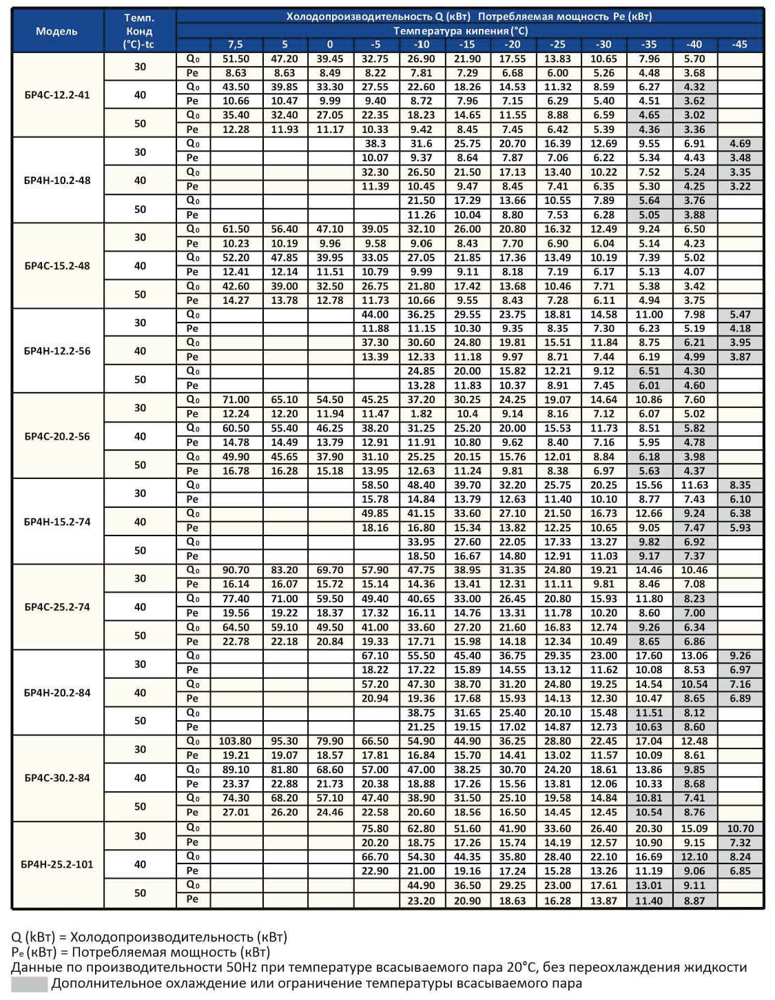 Производительность R404A/507A
