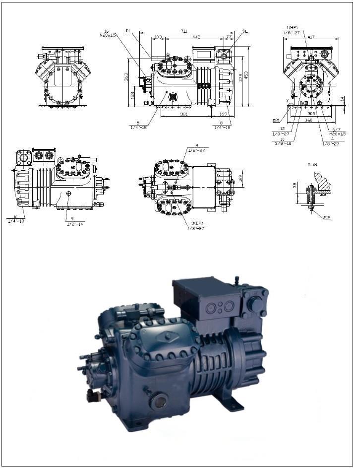 Холодопроизводительность, Вт ПРИ R-404A/HBP- Высокотемпературные/380-420V / 50 / З | 12660 |