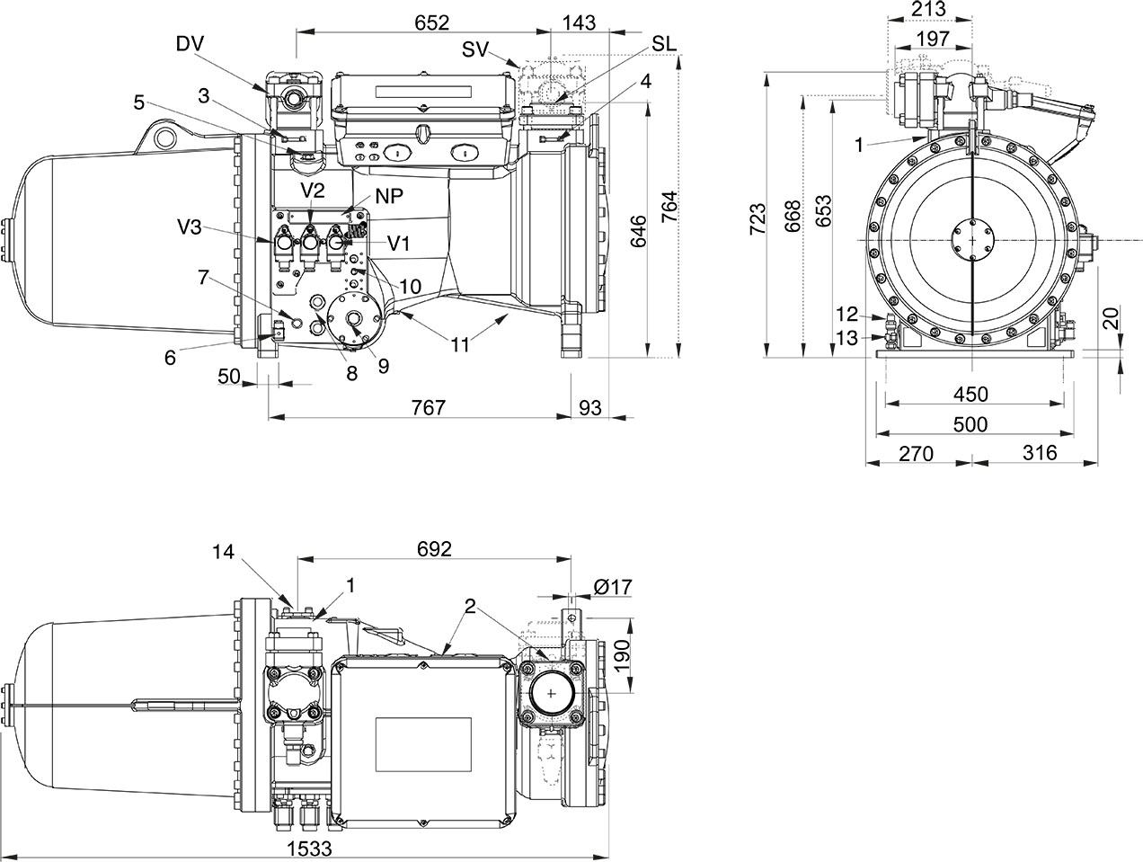 7: Разъем для регулятора уровня масла 3/4" NPT