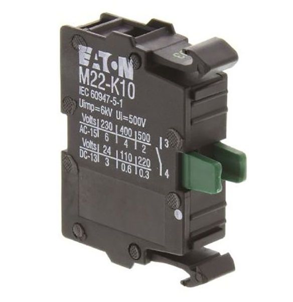 Контактный элемент M22-K10 1НО щит EATON содержит протяженную упругую несущую полосу и несколько расположенных друг за другом в продольном направлении несущей полосы перемычек. Такая конструкция позволяет обеспечить компактность с одновременной передачей большего тока. Контактный элемент применяется для создания надежных, долговечных и выдерживающих достаточно высокие токи электрических соединений между двумя поверхностями, которые должны быть электрически соединены, но разделены достаточно большими зазорами. Данный контактный элемент устанавливается на основание крепёжных адаптеров и монтируется в щиты/шкафы. Возможен монтаж на DIN-рейку.