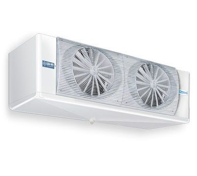 Воздухоохладитель LU-VE F30HC442E4 обеспечивает холодопроизводительность 16,3 кВт при условиях температуры охлаждения -8°C и разности температур 8K с использованием R404A. Его корпус выполнен из оцинкованной стали с покрытием Epoxy-Polyester и имеет сертификат "Евровент". Шаг оребрения составляет 4,5 мм. В воздухоохладителе LU-VE F30HC442E4 применяется высокоэффективный теплообменник Turbocoil, обеспечивающий высокую эффективность теплообмена благодаря использованию медных труб малого диаметра с внутренней винтовой насечкой и пластин оребрения из листового алюминия с турбулизаторами специального профиля, которые уменьшают степень усушки и намораживания. Устройство оснащено четырьмя вентиляторами диаметром колеса 300 мм, работающими под напряжением 220В/50Гц и потребляющими по 0,08 кВт каждый. Система оттайки является электрической, работает при напряжении 220В/50Гц и потребляет 7,8 кВт.